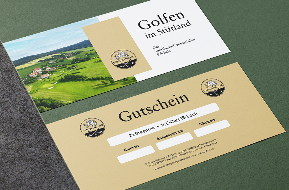 Zusätzlich erhältlich: Gutscheine für Golfkurse oder mit individuellem Wunschbetrag.