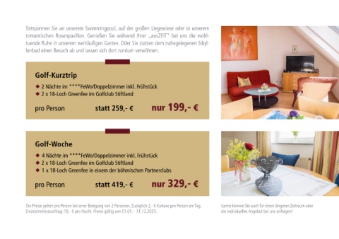 Einzelzimmerzuschlag: 10,- € pro Nacht. Preise gültig von 01.01. - 31.12.2025. ein individuelles Angebot bei uns anfragen!